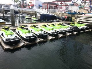 Cruise past waterfront homes on a floating tiki boat. Glide across the bay on jet skis. Charter a Duffy and captain your own sunset.